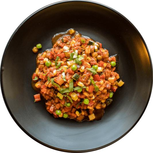 A variety of locally sourced veggies stewed to perfection in organic tomatoes and a generous amount of herbs and spices.